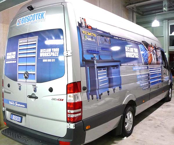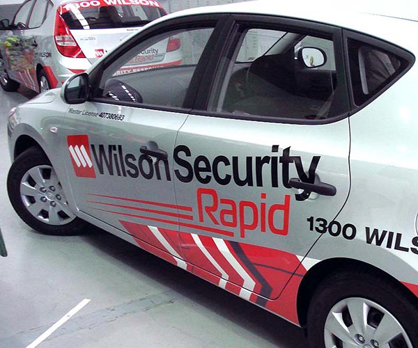 Wilsons Security Rapid branding decals accurately applied according to signage specificiations.The real estate on trucks make for a great way to to advertise and attract attention.Presentation is key for any business. Raise branding awareness with ease by adding signage to your van.We make anything possible! This highly detailed design was made to perfectly work around the contours of this very large Mercedes van.Waste no space! Highly effective tradie ute signage catches all the wanted attention.Our large media printer can assure you less seams on your bus for a nice natural look. This print features a matte finsh for easy viewing at all angles.